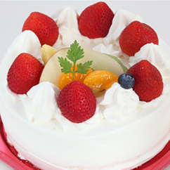 さわやかな自慢の生クリームをたっぷり使い、いちごと生クリームとふわふわなスポンジのバランスが絶妙。人気の定番デコレーションです。